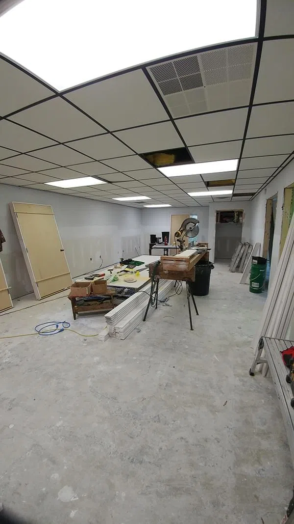 1/7/19: Computers configured and set up in offices, office staff has moved back in, sales staff has moved back in, employee entrance door has been replaced